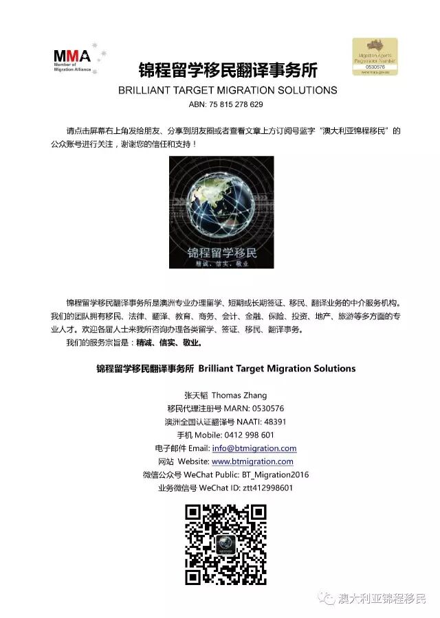 澳大利亚2017年签证移民等政策调整总结 2017-07-04 内容摘自网络 澳大利亚锦程移民 关于澳洲留学、签证、移民等相关资讯,欢迎咨询锦程留学移民,我们将为您提供第一手的信息和最切实可行的建议。 共享此文章: 点击以分享到 X(在新窗口中打开) X 点击分享到 Facebook (在新窗口中打开) Facebook 赞 正在加载……