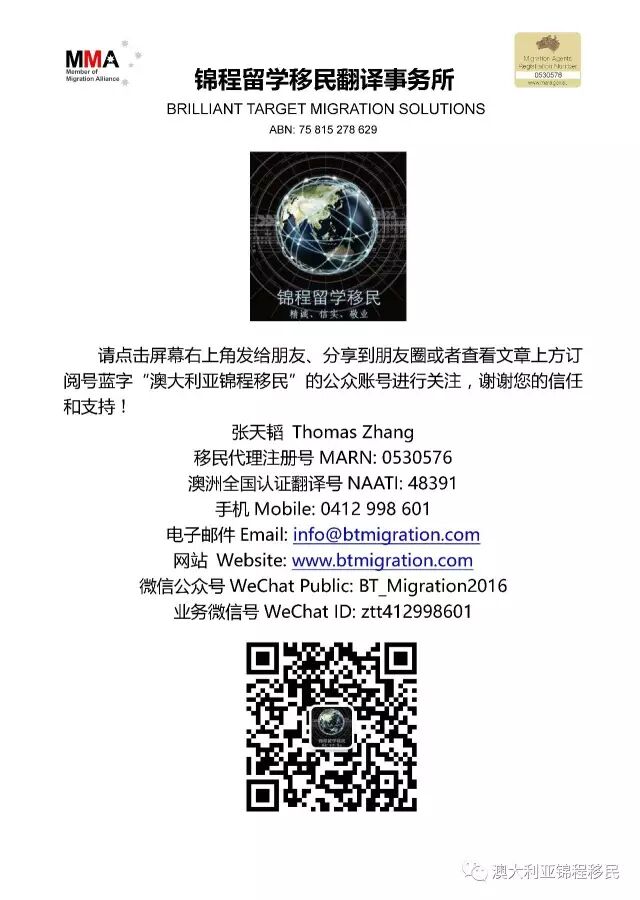 澳洲近期移民政策变化汇总(2017年11月7日) 2017-11-07 内容摘自网络 澳大利亚锦程移民 MIA(澳洲移民协会)对澳洲移民部近期移民政策的变化进行了汇总,锦程移民在此跟大家做一个简单的分享。 政策变化一 移民条例新增加了8602条款,短期和过渡签证持有者不能拖欠澳洲政府医疗系统任何费用。如果拖欠澳洲公共医疗系统账单的朋友们需要尽快缴清,否则会影响您的下一个签证申请。这类账单通常指救护车系统的费用、医院急诊部的费用、社区医疗服务机构的费用等等,但是不包括临居签证持有人通过购买私人医疗保险而产生的费用。 政策变化二 提供虚假材料追溯期增加到了10年,同时包括了已经撤销的签证申请,从今年11月18号开始正式执行。由此可见移民代理的重要性会更进一步的增加;一个好的移民代理对于您的签证是全方面的保障,也对您所提供的材料会进行一个详细的审查。如果移民部认为您提供的材料为虚假材料,最后有可能导致您十年内不能申请任何澳洲签证。为什么移民部会对4020条款进行一个修改?因为发现部分申请人和机构近期向移民部提供了数量巨大、性质严重的虚假材料,造成移民部的审理难度大大增加,所以这次大力度的改革也显得非常有必要。 政策变化三 父母和配偶(伴侣)移民签证申请递交方式会在11月18号之后进行变更,锦程移民根据这次MIA发布的信息,预测父母移民签证申请会由传统的纸递转变成网上递交,很有可能会提高父母移民签证的审理速度。另外,对于父母移民和伴侣移民的递交地点、表格代号等等也会有相应的变化。请大家继续关注锦程移民的进一步更新。 政策变化四 澳洲政府计划在今年11月份推出3年和5年的长期父母探亲旅游签证,这类签证主要针对于澳洲的PR持有者和澳洲公民。根据最新的消息,去年相关立法已经通过了众议院的评估,但是目前相关立法仍然没有被参议院通过。如果此类新的签证在未来有任何走向,锦程移民也会在第一时间跟大家更新。 共享此文章: 点击以分享到 X(在新窗口中打开) X 点击分享到 Facebook (在新窗口中打开) Facebook 赞 正在加载……