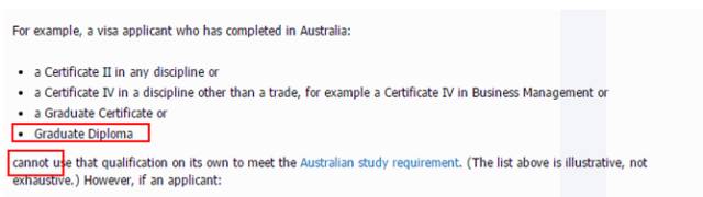 Graduate Diploma课程已不再是被认可的澳洲2年学习经历里的有效组成部分,已不能再算入2年时间之内,这意味着很多留学生之后申请TR的资格受到影响。